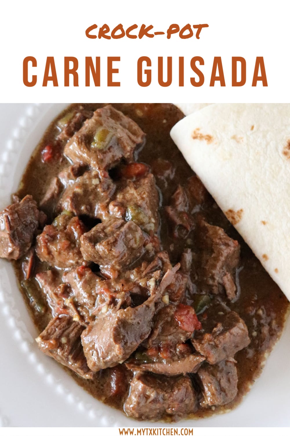 Make this Tex-Mex favorite at home with this easy recipe for Crock-Pot Carne Guisada! Beef and spices slow cook resulting in a tender flavorful roast with a rich gravy.